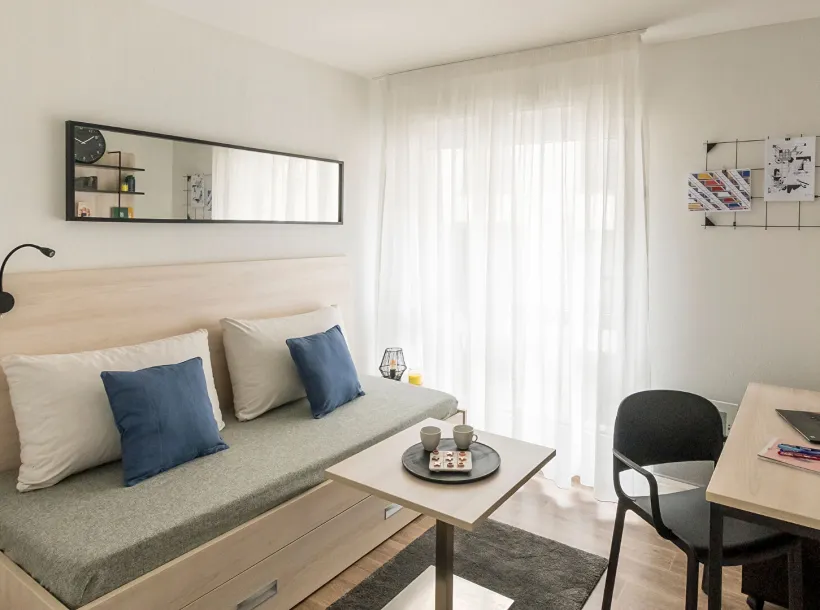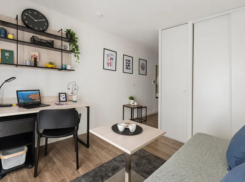 Studio meublé et équipé de 18.76 m², en excellent état, situé au 1 er étage d’une résidence étudiante de 2022 avec services