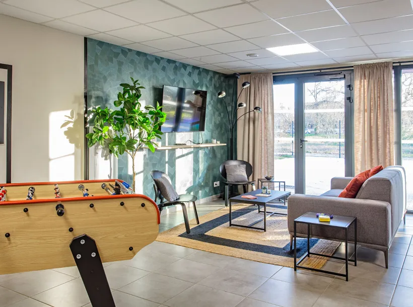 Régisseur sur place, accès sécurisé par digicode et vidéosurveillance, salle de fitness, espaces coworking et détente, laverie, local à vélos, parking, internet et service ménage. Jardin commun de 4 648m2