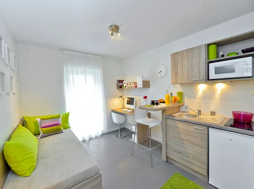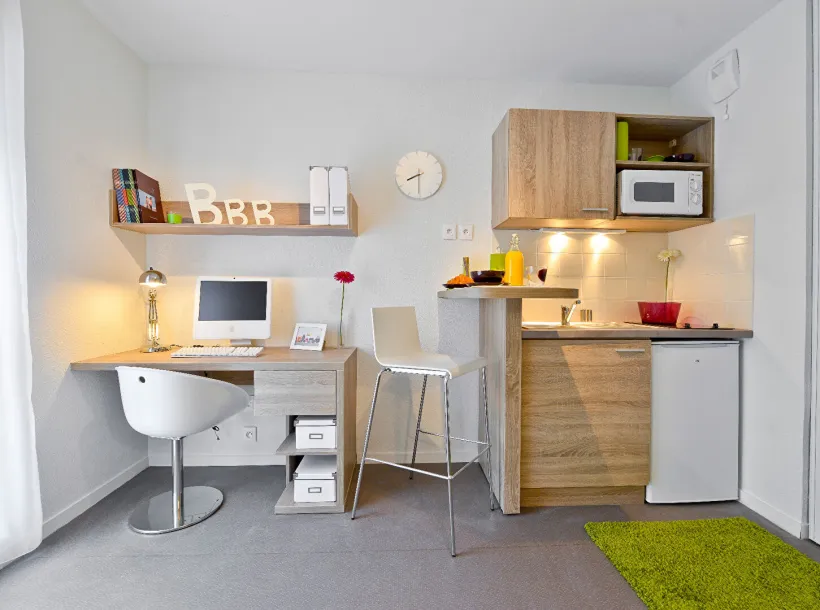 Le studio est entièrement meublé et équipé. Il est composé d’un hall d’entrée, un coin cuisine, une salle d’eau, un bureau et un lit. La résidence étudiante Carré Saint Jean est située en plein coeur de Roubaix, proche des principales lignes de transports, permettant aux étudiants de rejoindre rapidement leur faculté ou école. Les services pour locataire inclus : Box fibre individuelle, laverie équipée, salle commune, local à vélo, salle de fitness, un responsable de résidence etc.